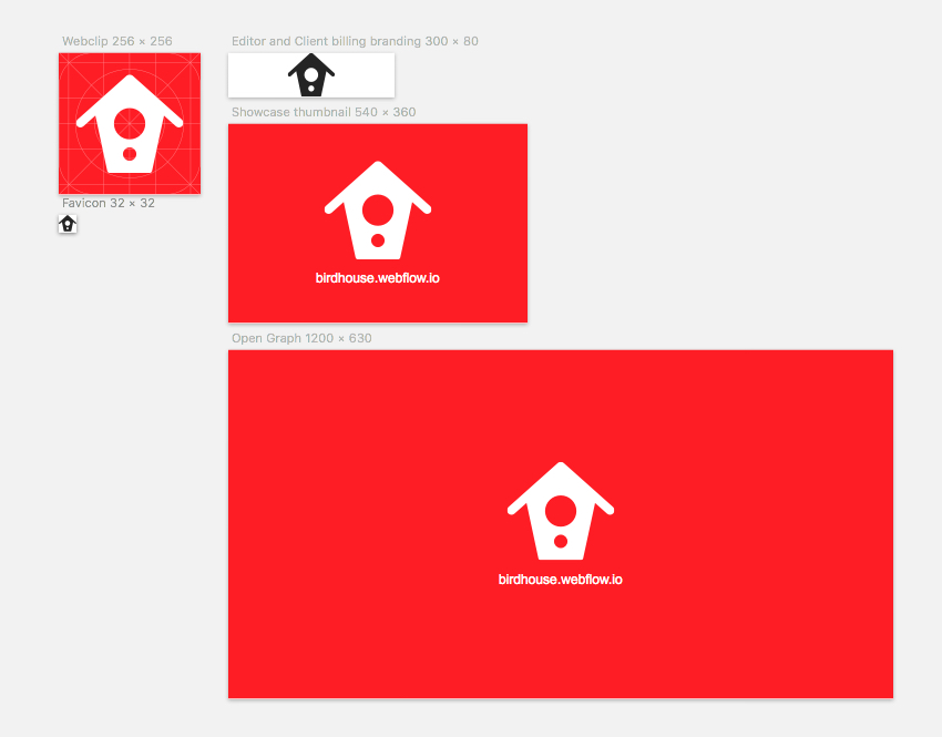 When viewing a site on an iPhone or an Android phone, you can add a shortcut to the site on your phone's dashboard. It appears alongside all the apps you already installed. Always use a full edge to edge background for best results. Upload the image as a full square, mobile OS will take care of the round corners if they need to. Don't forget to hide the design grid before exporting, it's only there to help you with proportions. Try to make the most important part of your design to fit in the inner circle. Warning: even if Webflow will allow you to upload a SVG file, it won't work once published. Prefer using the PNG24 format.